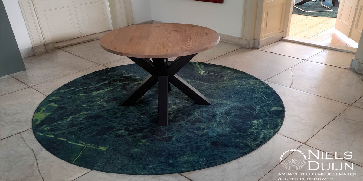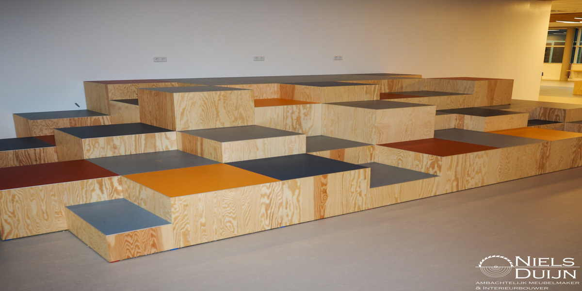 Materiaal: Pools Grenen Multiplex, Aluminium hoekprofielen & Marmoleum