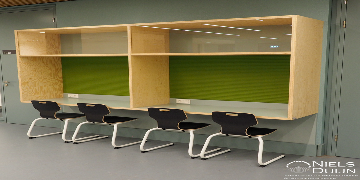 Materiaal: Pools Grenen Multiplex, glas, HPL & Gabrieleuropost